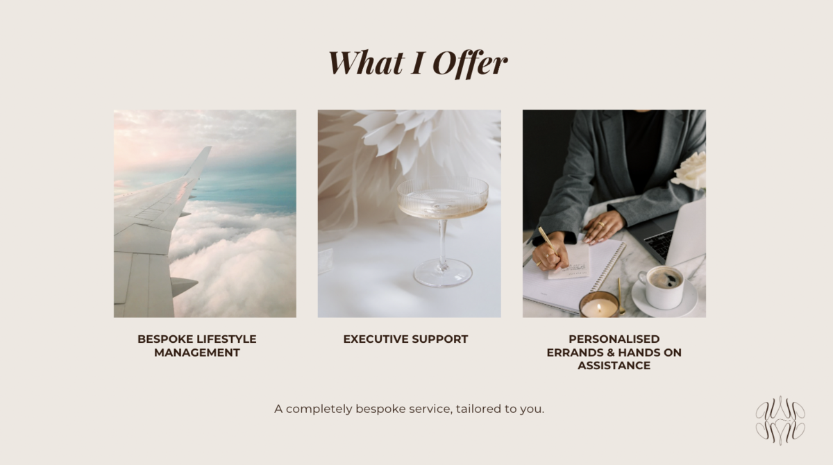 The Webb Collective is a luxury lifestyle management brand built on trust, connection, and refined simplicity. With over a decade of experience, she supports high-end clients with everything from bespoke travel and gifting to business project management - all delivered with absolute discretion and care. The brand identity was designed to mirror that approach: polished, personal, and effortlessly elegant. Drawing inspiration from high-fashion editorials, the neutral palette conveys calm sophistication, while the bespoke logo - formed from interconnected flourishes - symbolises the web of relationships, details, and trust at the heart of her work. The result is a timeless, understated brand that feels as seamless and intentional as the service she provides.